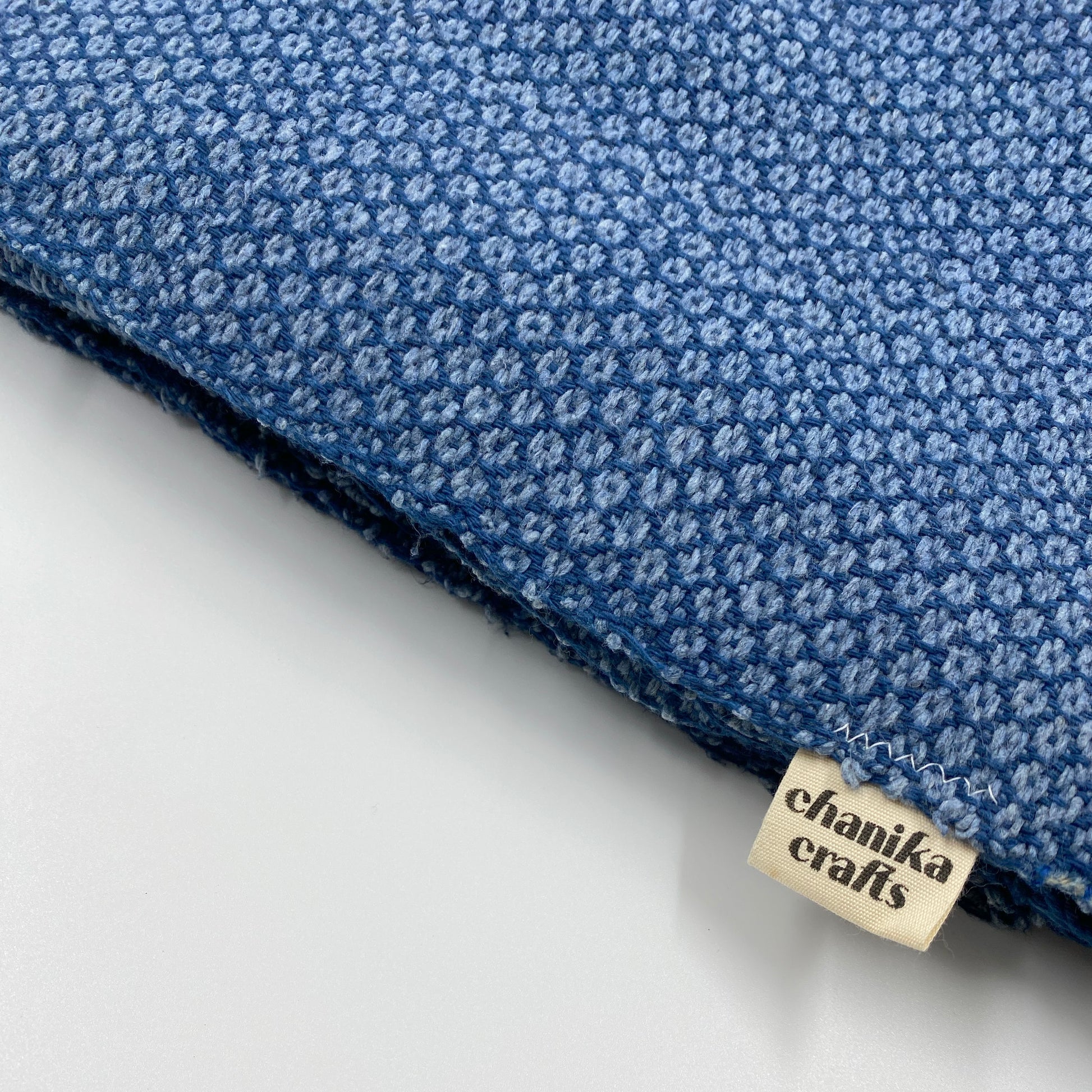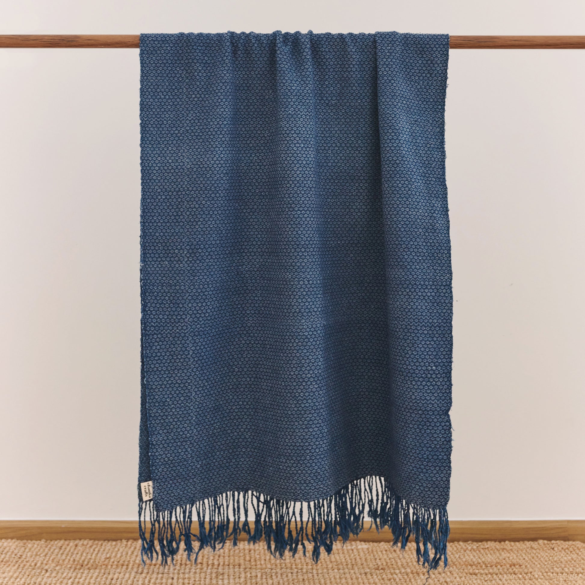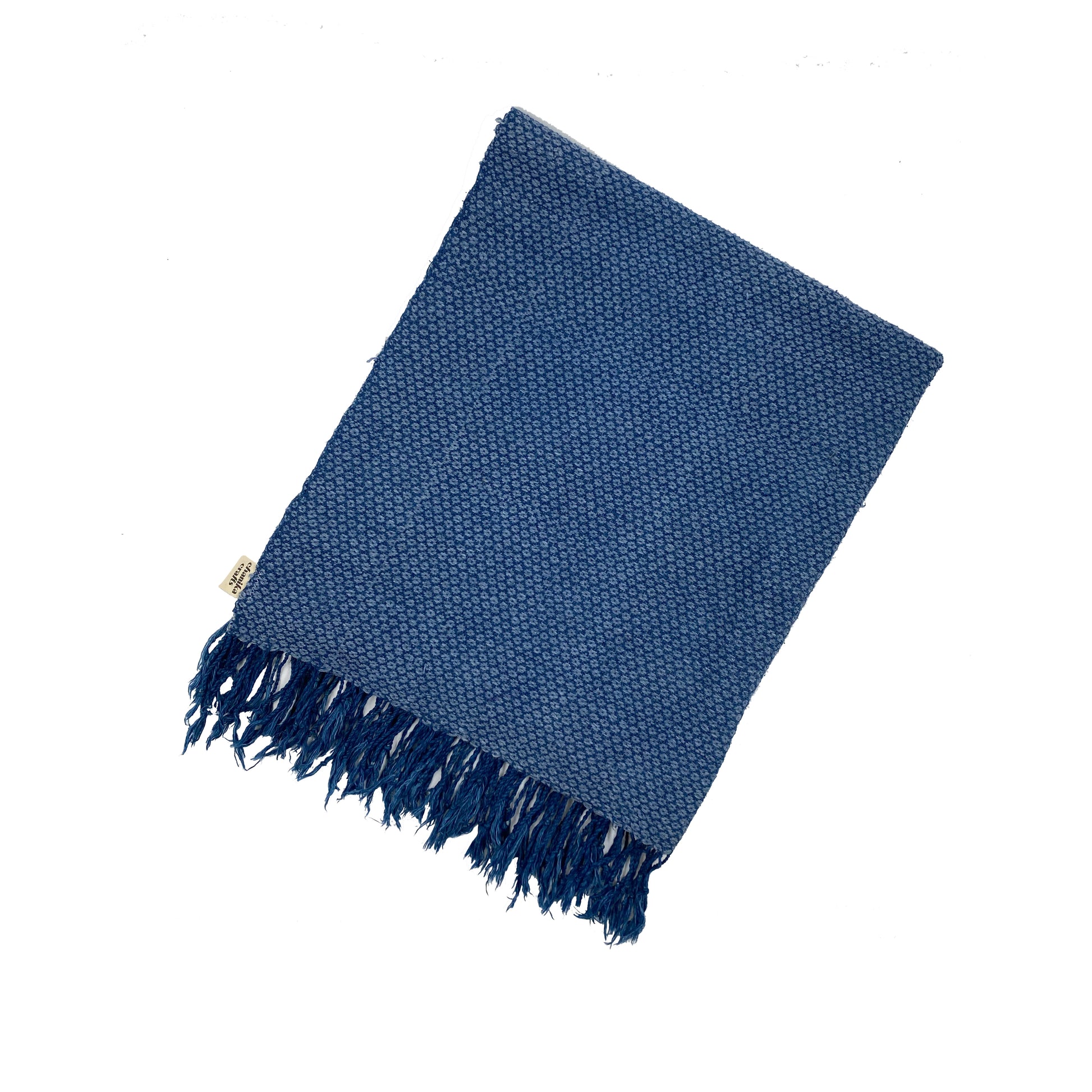 The throw is crafted in Don Tan, Mukdahan, Thailand using cotton grown by local farmers and yarn dyed naturally in classic blue hues of indigo.