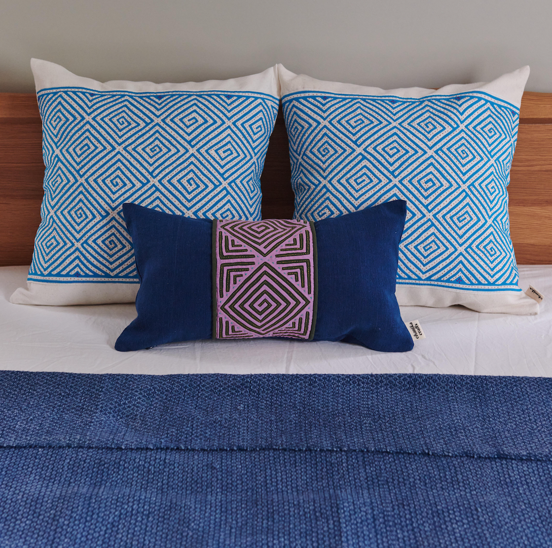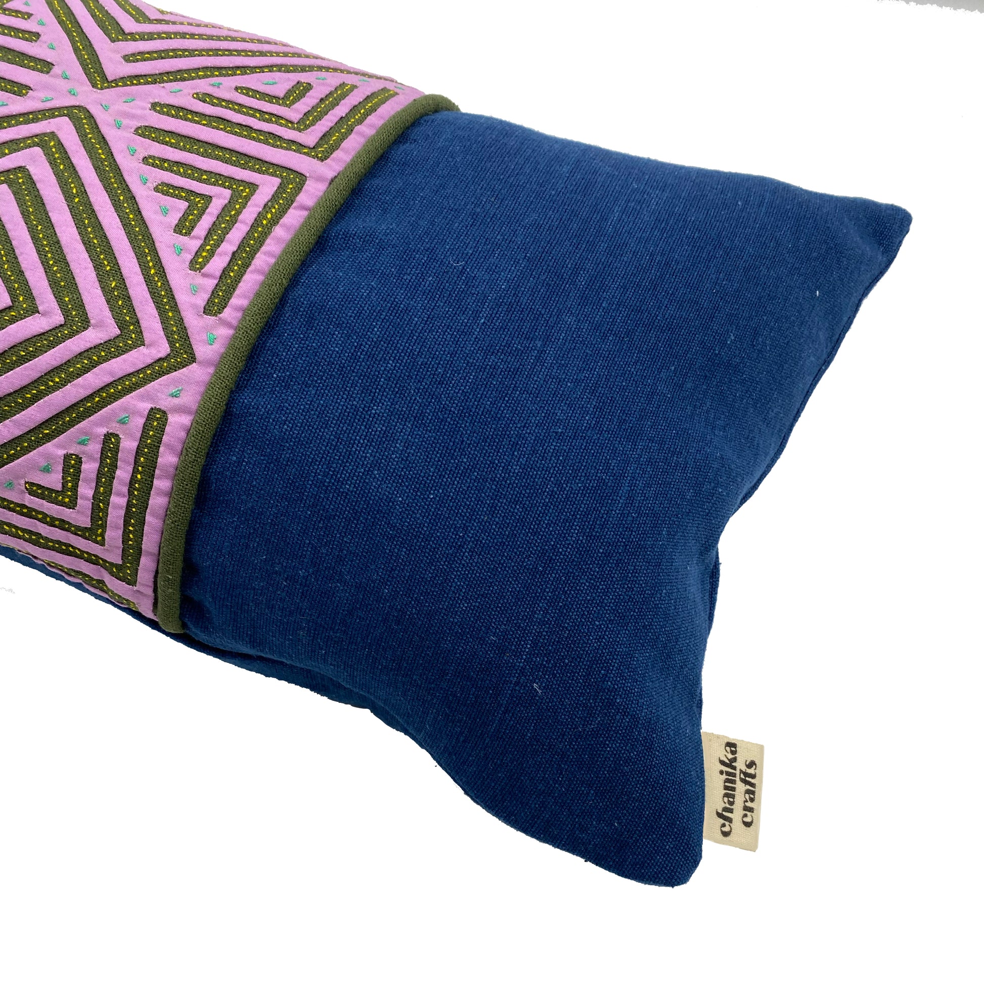 This unique Hmong pillow case features an embroidered centre piece and indigo-dyed fabric sourced from Sakon Nakhon, Thailand.