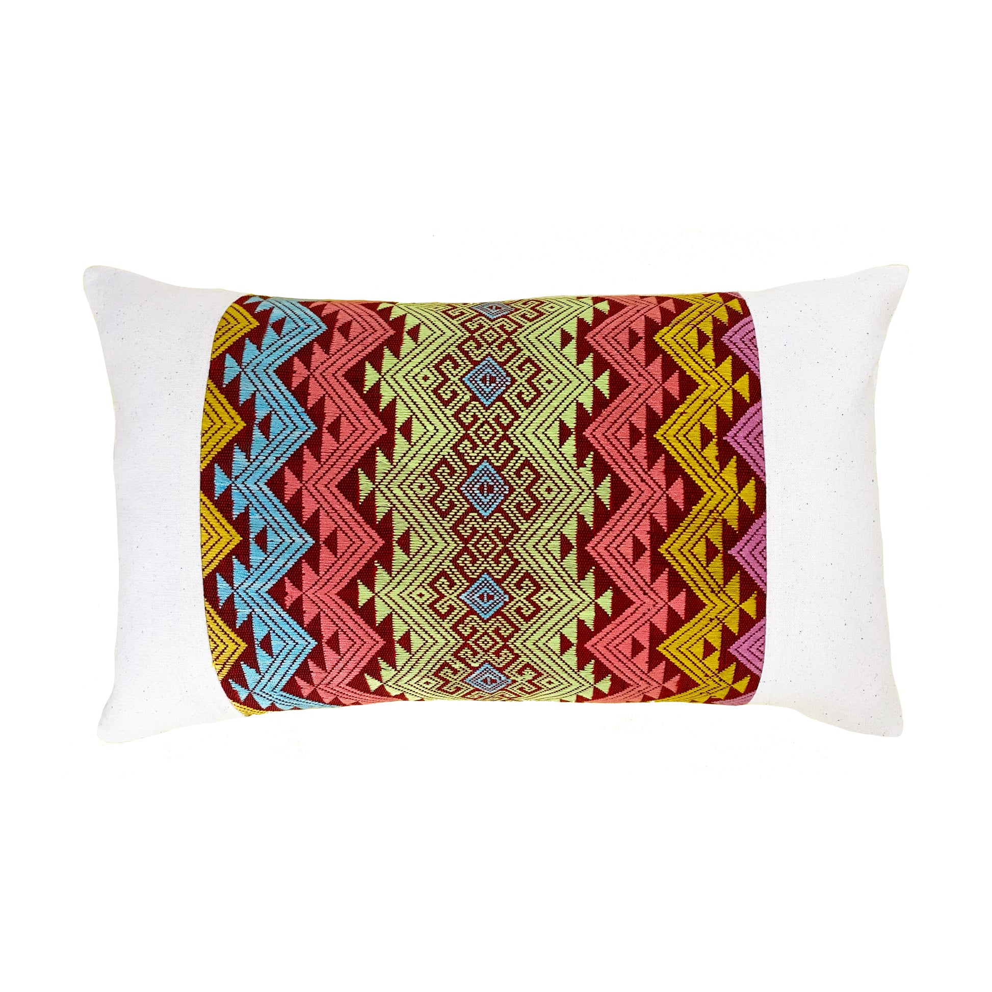 Sekong silk, crafted using Khid and Jok techniques, is featured as the centerpiece of this pillow cushion, with 100% handwoven cotton from Chaing Mai on the back and sides.