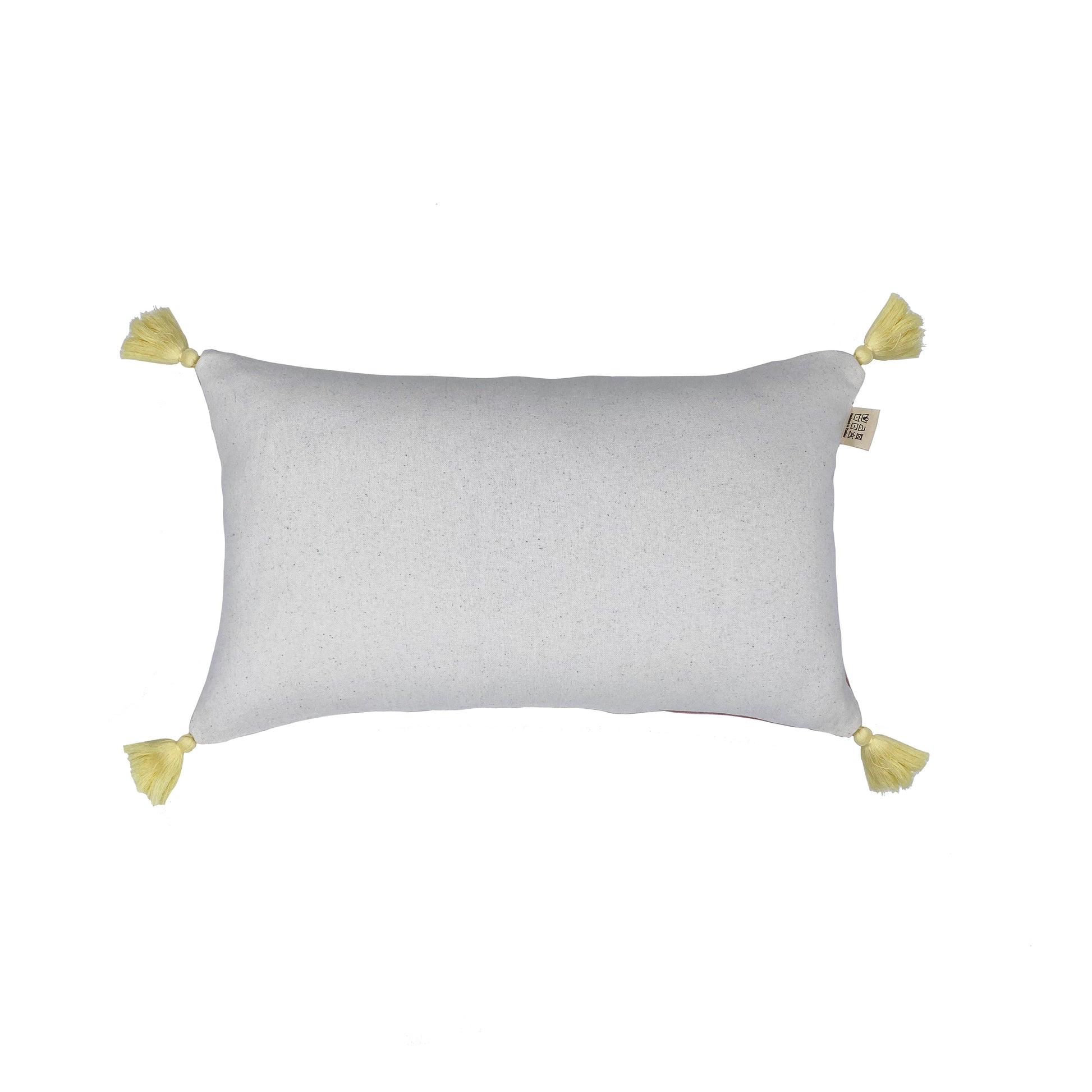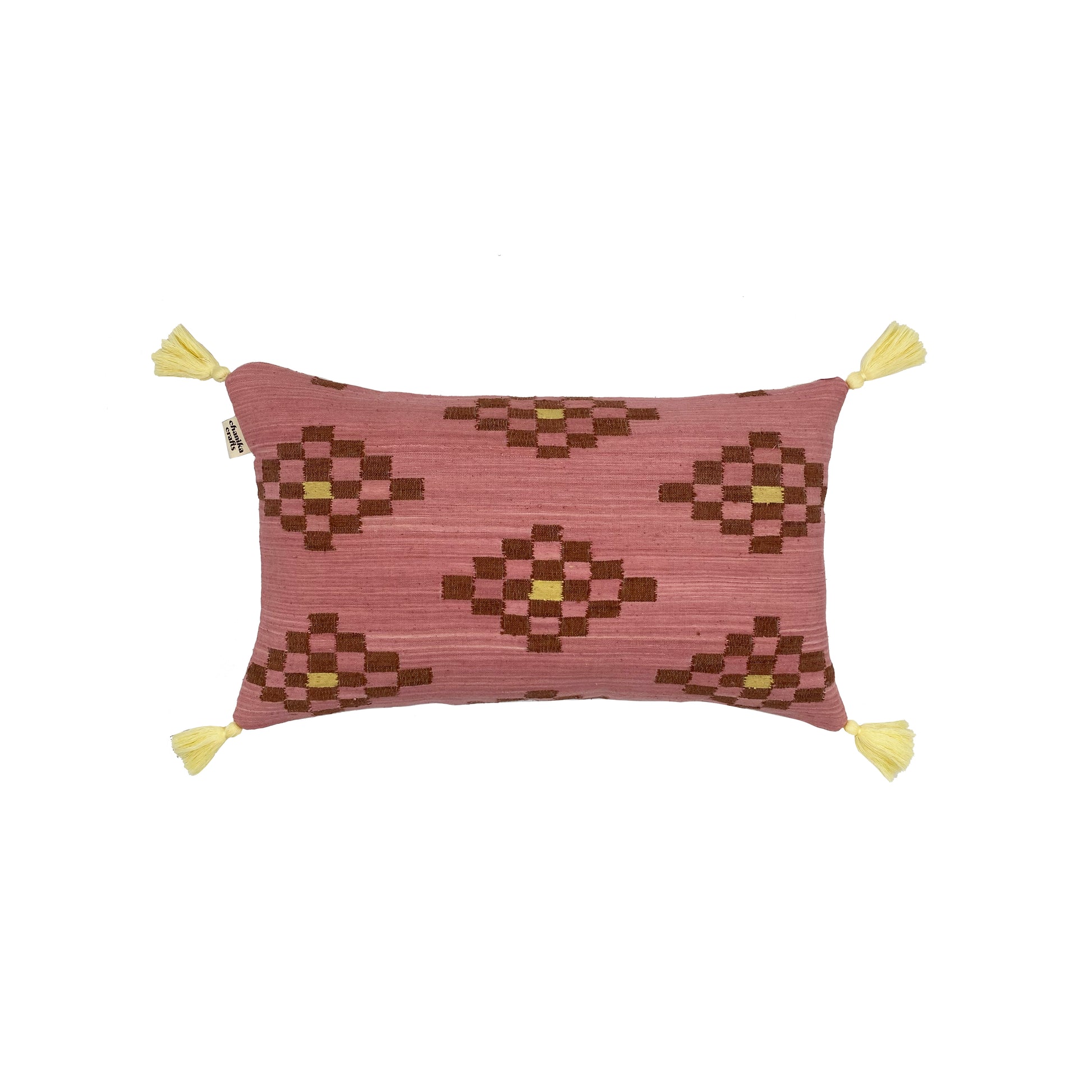 This vibrant Tai Lue patterned pillow is made of 100% organic cotton and naturally dyed, handcrafted by Tai Lue women in Thailand using exquisite tapestry techniques.