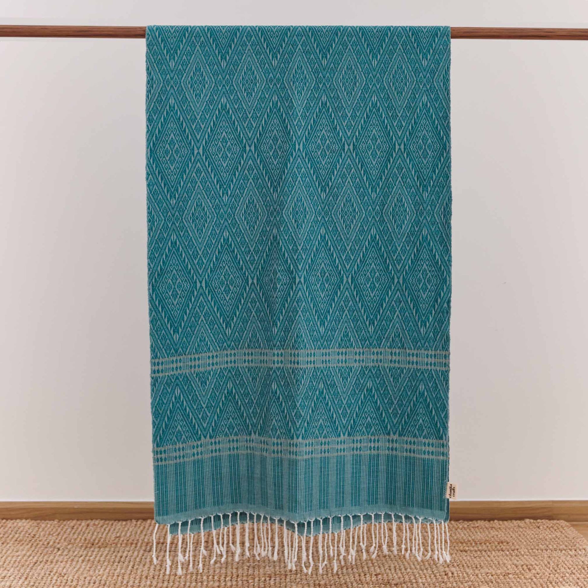 Khit weaving, also known as "ทอผ้าขิด" in Thai, is a traditional handcrafted technique that uses looms to create geometric patterns in contrasting colors. This style originates from Chaiyaphum province in North-East Thailand and involves weaving a light pattern over a black background, giving it a "floating" appearance.