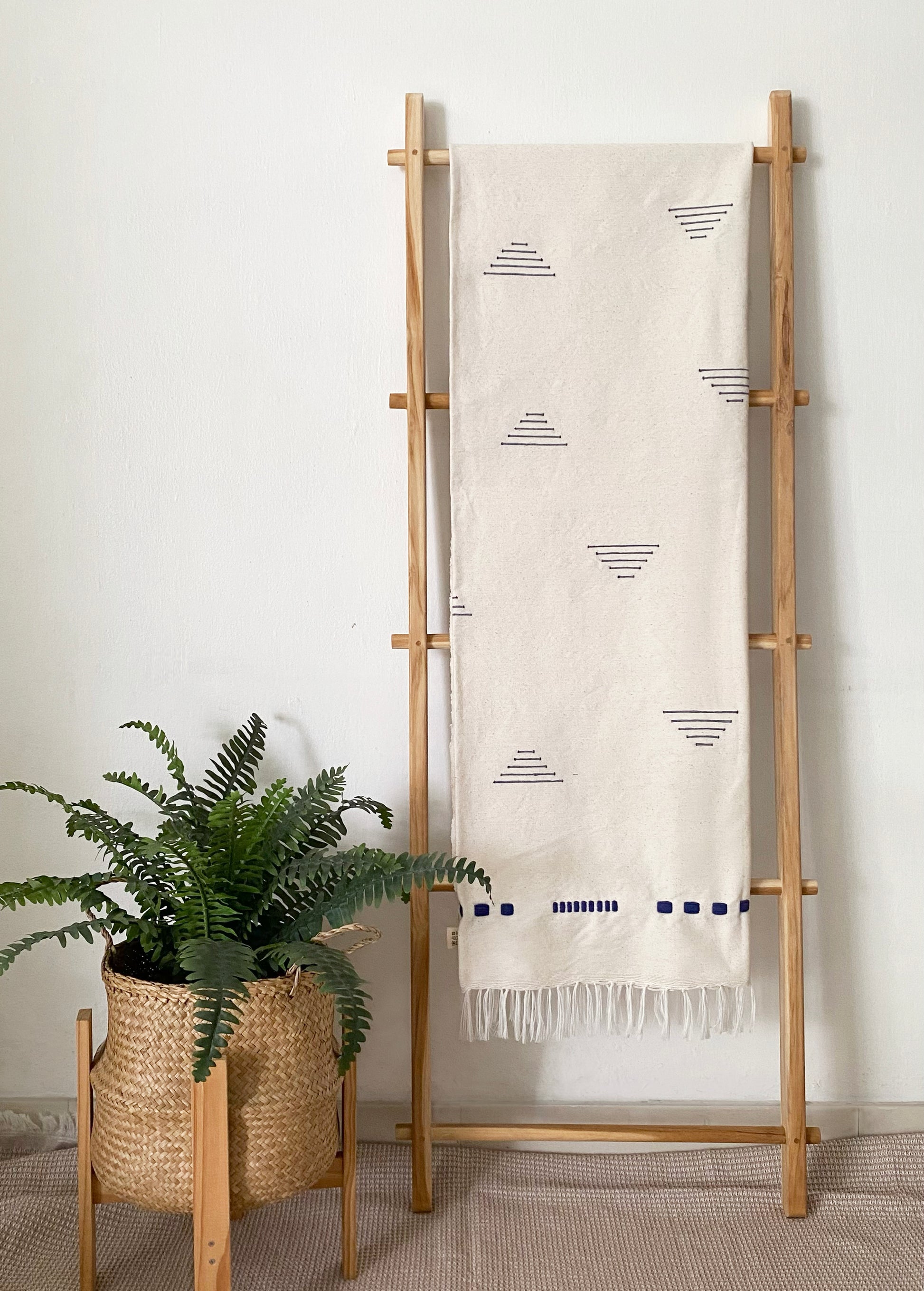 We team up with Tai Lue artisans to produce a simple pattern by utilizing advanced techniques in thrown-making. Our partner from Phayao, Thailand applies looms bigger than the standard size used in Southeast Asia (50-100 cm). This is because of the lower temperatures in northern Thailand, where weavers often use materials for home use such as blankets.